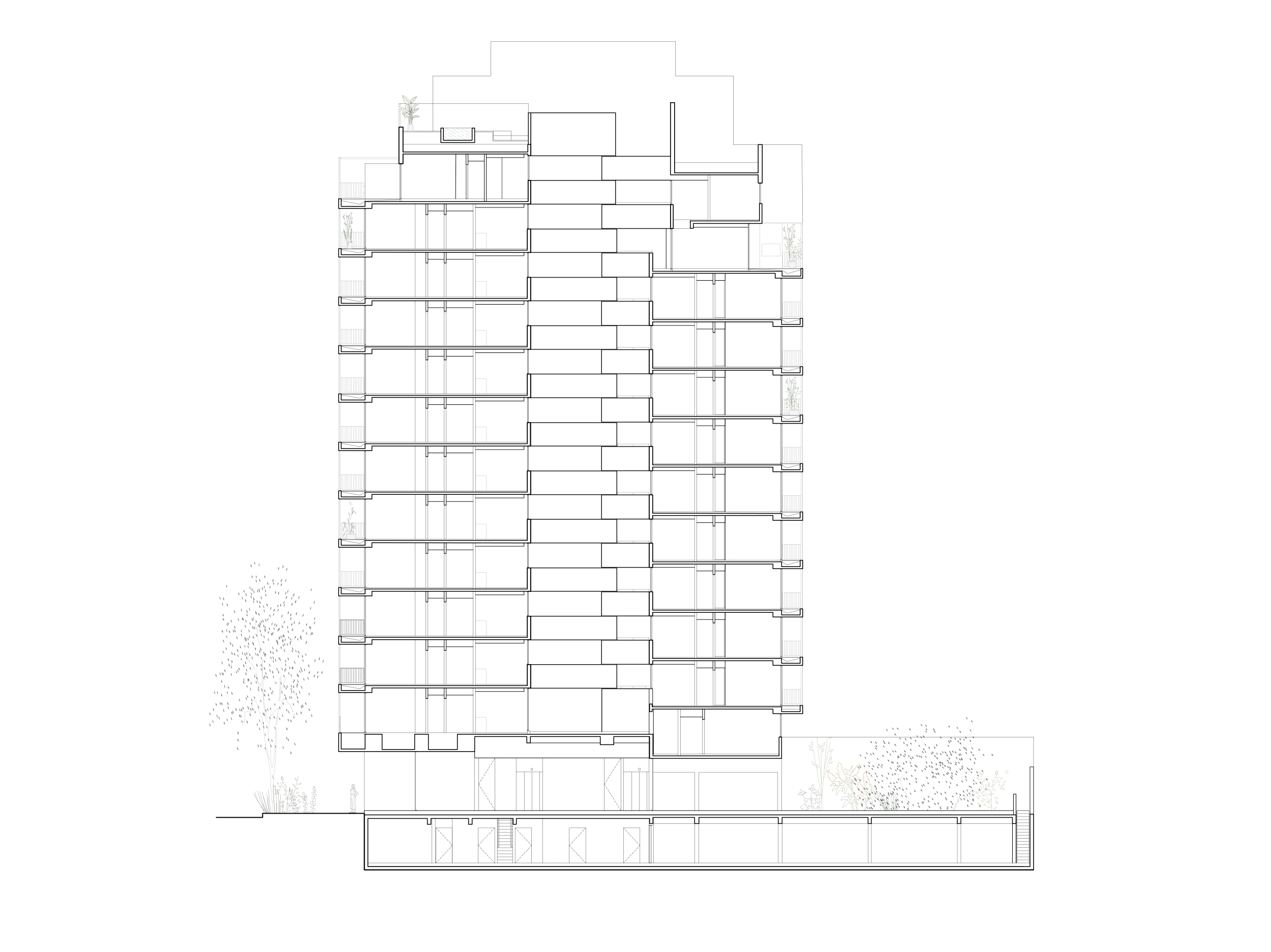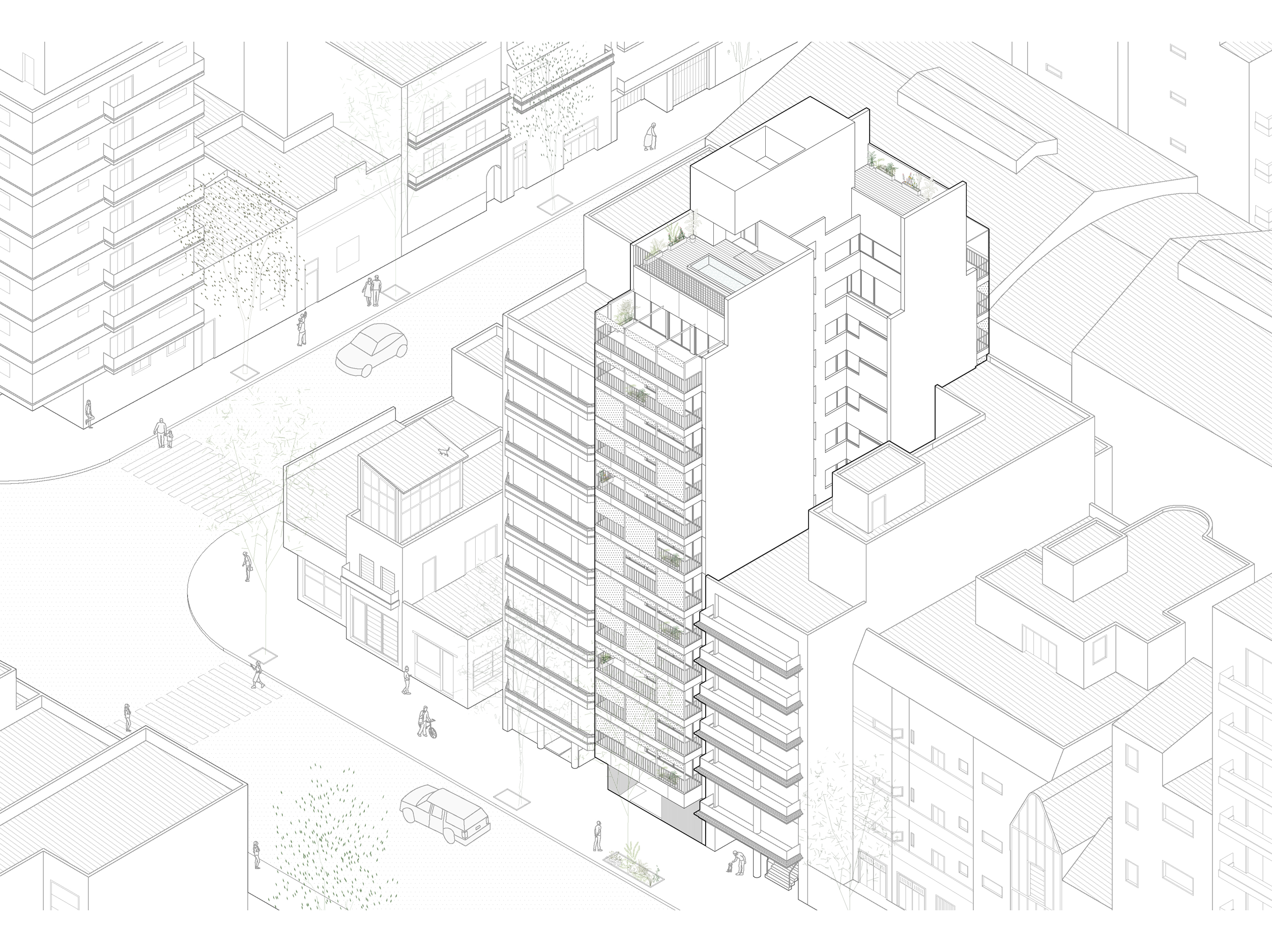 Ubicado en el barrio de Caballito, en un sector de alta densidad de la Ciudad de Buenos Aires, se propone un edificio de vivienda multifamiliar sobre un lote de 8,66 x 40m.